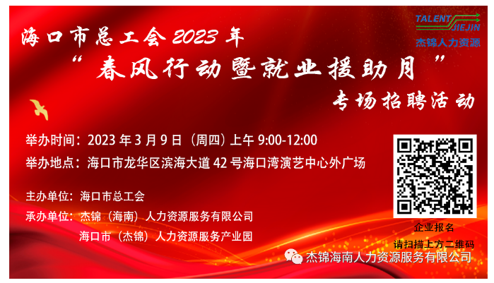 6月24日上午9時-12時,由??谑旋埲A區人力資源和社會保障局、??谑校埲A)人力資源服務產業園主辦,杰...